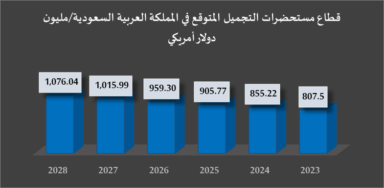 • حجم قطاع مستحضرات التجميل في المملكة العربية السعودية .