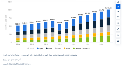 حجم قطاع مستحضرات التجميل في المملكة العربية السعودية .